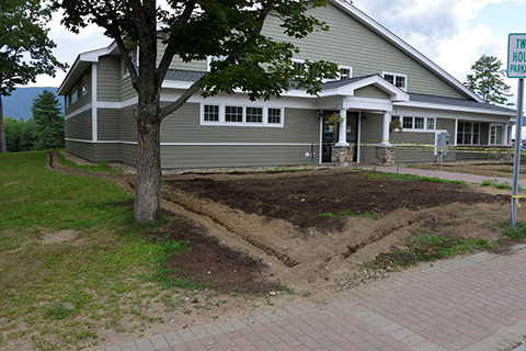 The Mountain Garden Club in North Conway, New Hampshire, was asked to landscape their new community center. As a little background, North Conway is a village within the town of Conway, which is bounded on the east by the Maine border and the White Mountains National Forest is to the west and north.