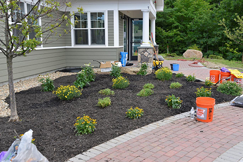 The Mountain Garden Club in North Conway, New Hampshire, was asked to landscape their new community center. As a little background, North Conway is a village within the town of Conway, which is bounded on the east by the Maine border and the White Mountains National Forest is to the west and north.